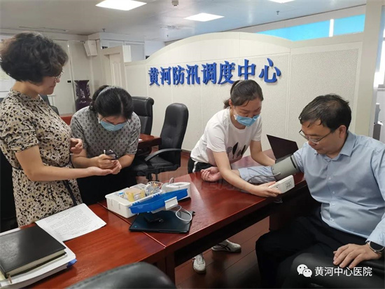 3个健康保障巡诊小组从10月1日起,在黄委机关、河南河务局、水文局、黄科院等单位,为防汛值班人员听诊、测量血压、血糖、心电图、解答健康咨询150人次。药剂科紧急筹备急救箱3套,各类应急药品320余盒(包)及时送到防汛各单位。