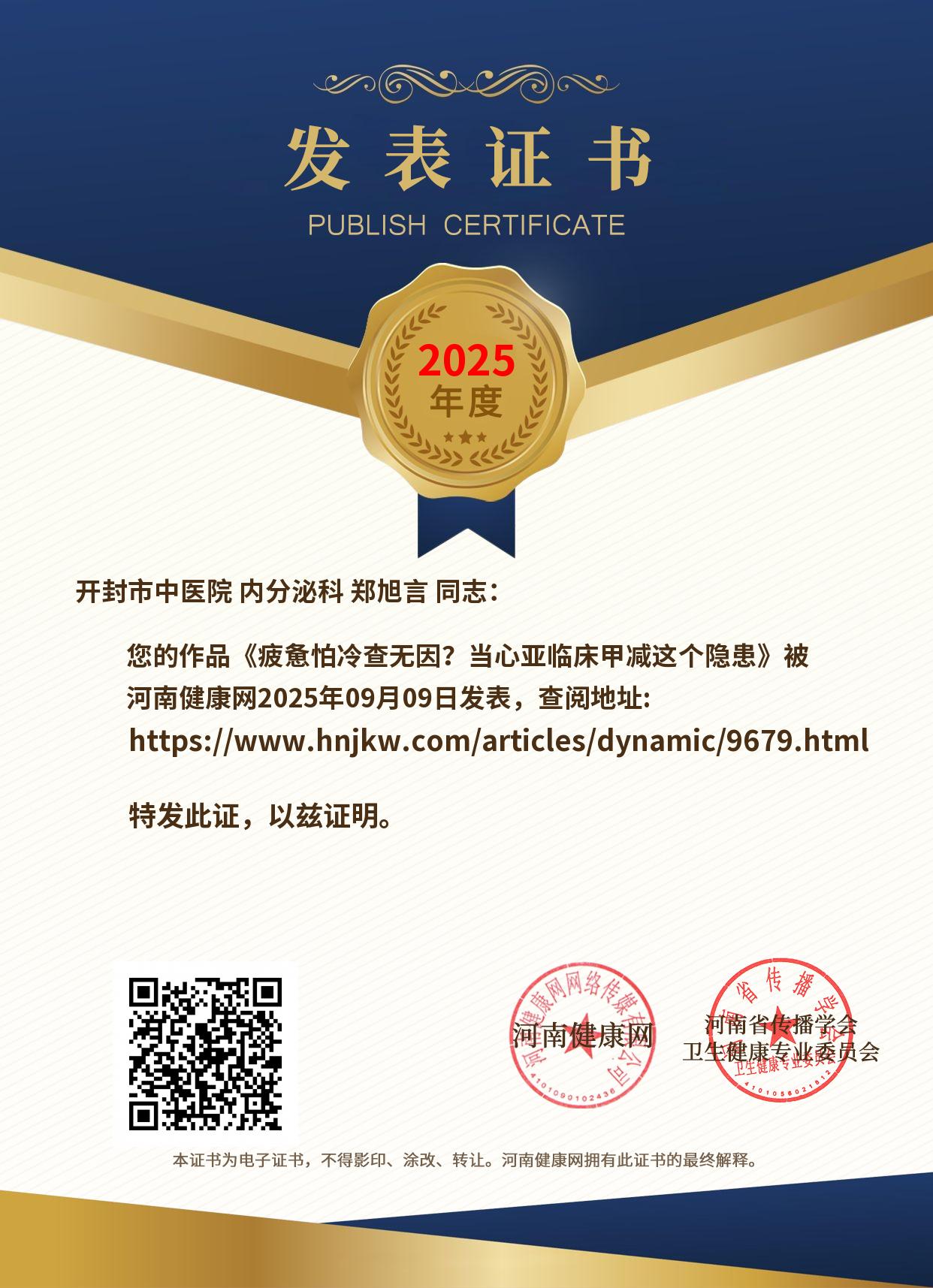 发表证书
