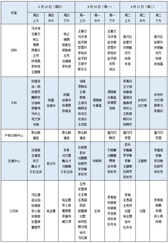 中秋佳节将至,为方便患者就医,郑州大学第三附属医院(省妇幼保健院、省妇女儿童医院)实行无假日医院,持续为您的健康保驾护航。中秋节期间门诊医师坐诊表如下。